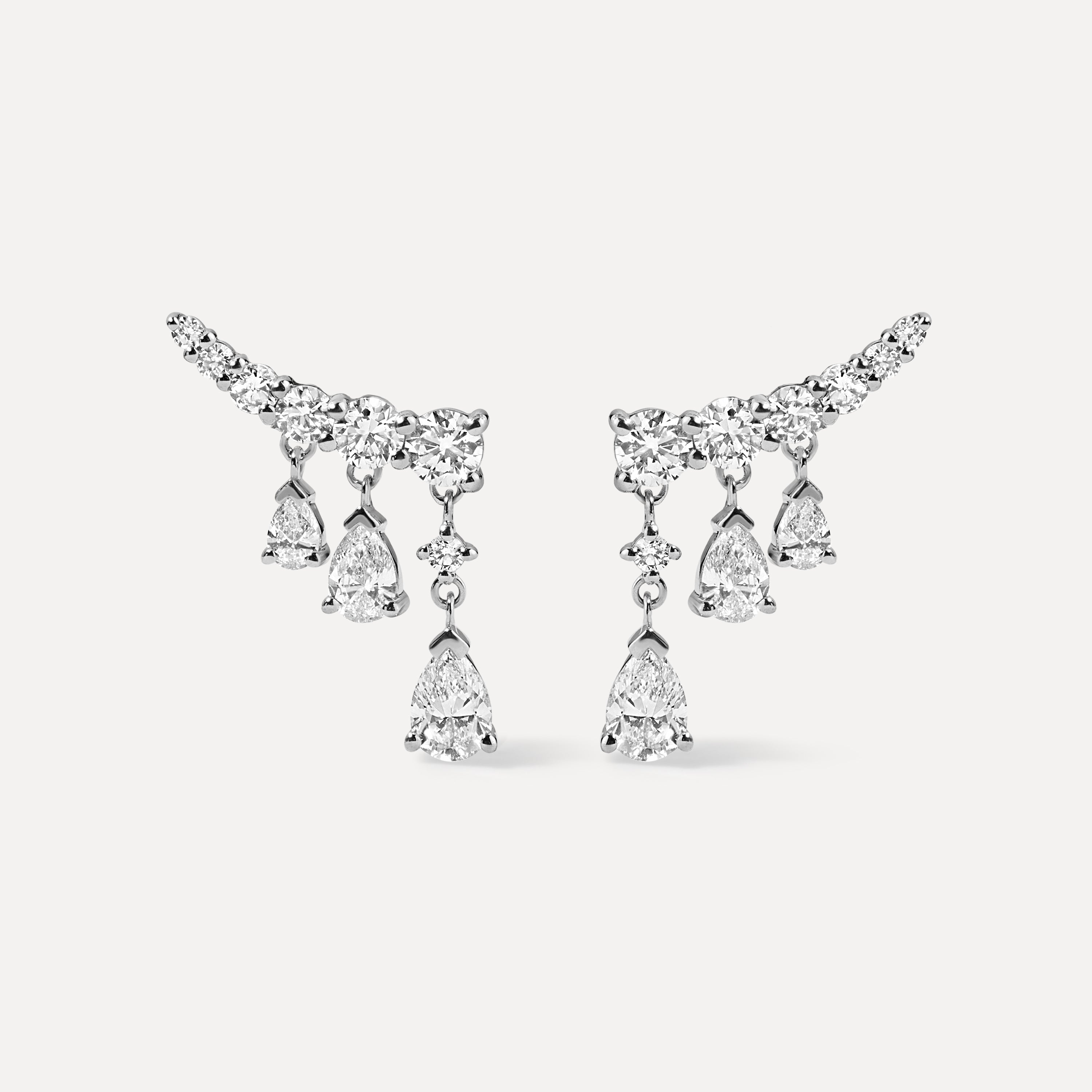 Cascade Pear & Round Diamond Earrings