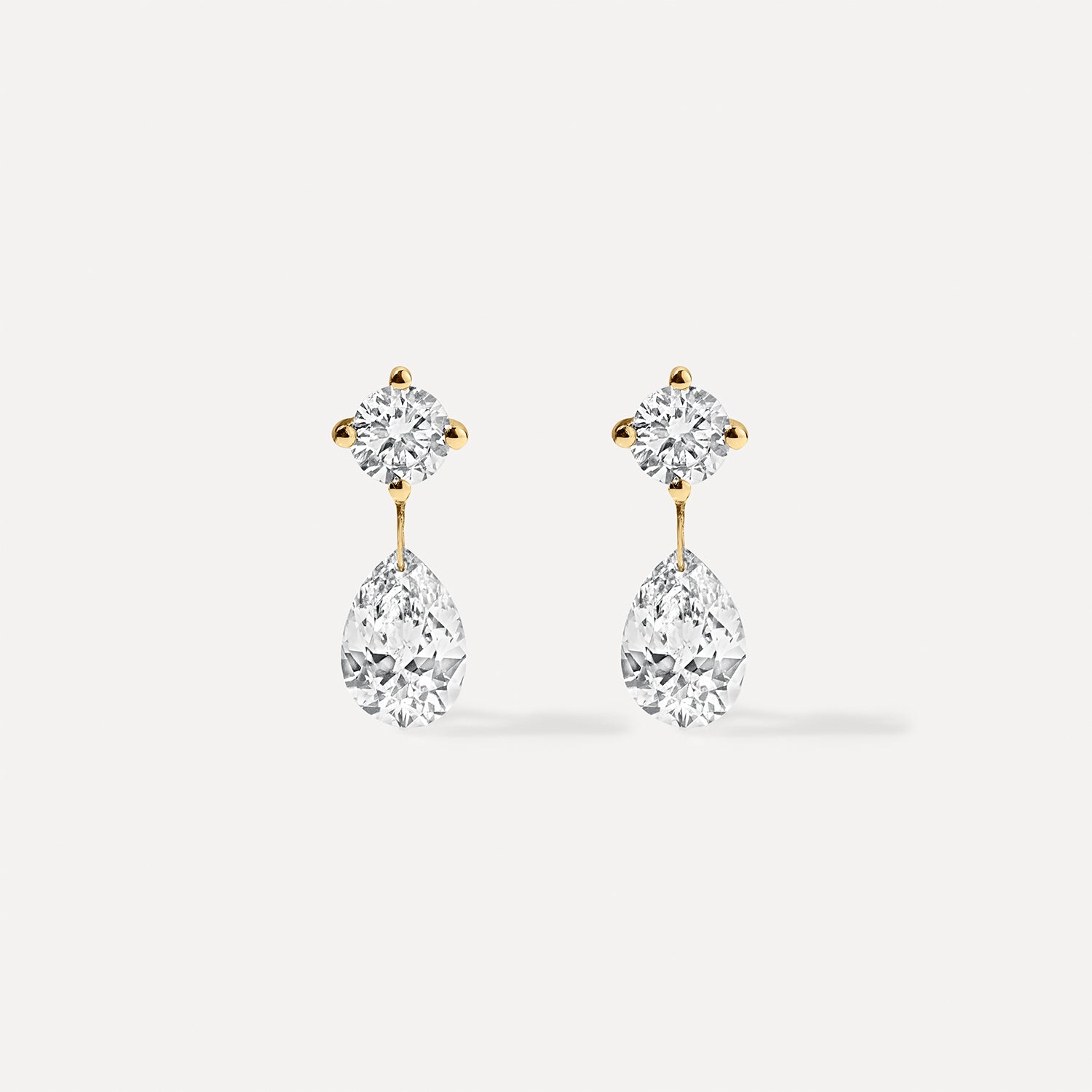 Where classic meets captivating, these lab-grown diamond earrings feature a round brilliant-cut stud and a floating pear-shaped diamond suspended just below—delivering graceful movement and exceptional sparkle from every angle.