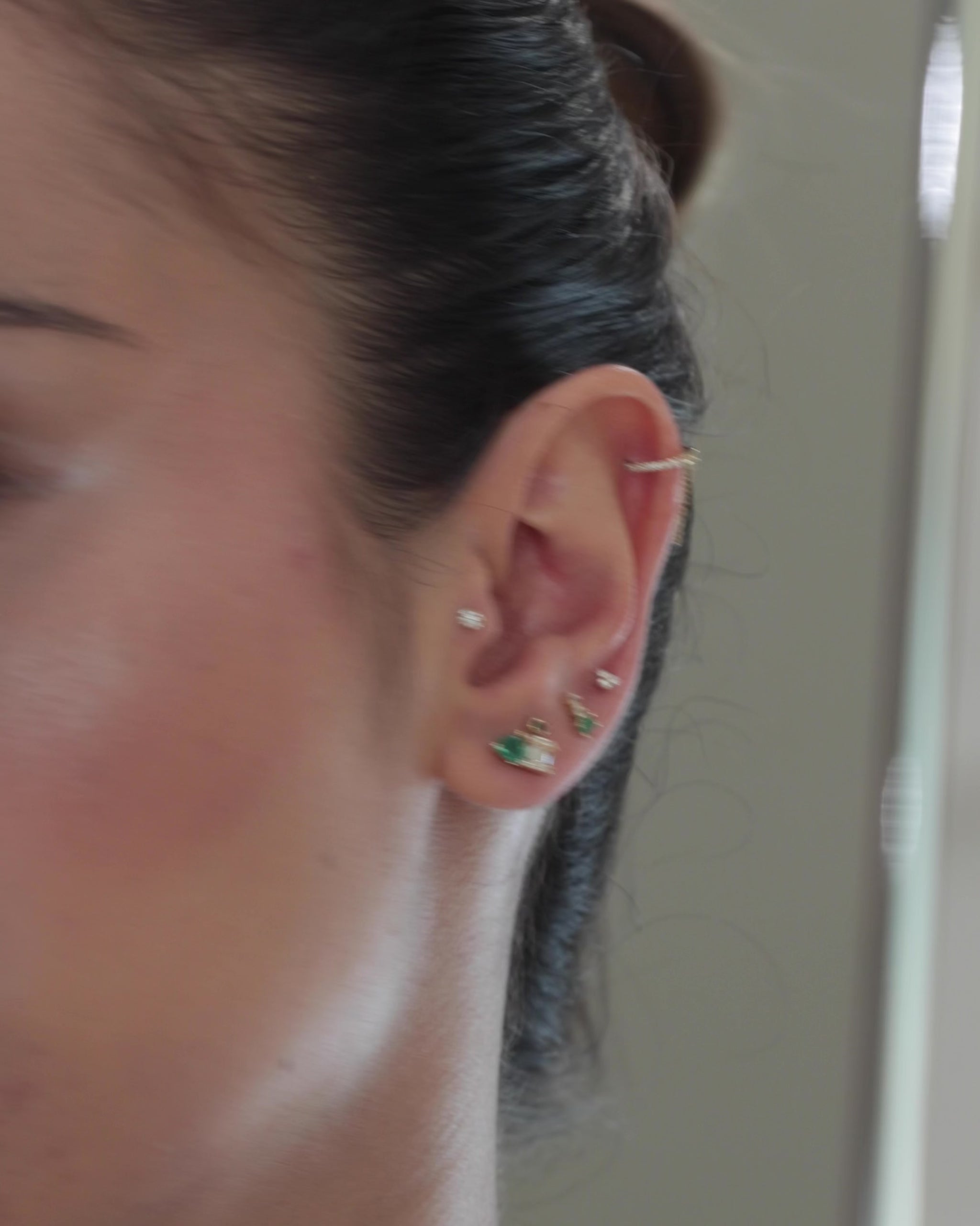 Nuestros Huggies mini con diamantes y cadena para uso diario en oro de 14k tienen pavé de diamantes blancos. Son delicados y cubren perfectamente la oreja. También se pueden usar al revés para lograr una apariencia de oro macizo.
